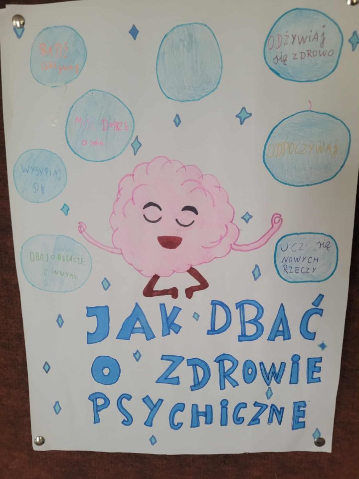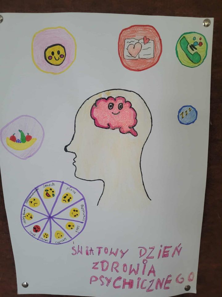 Światowy Dzień Zdrowia Psychicznego zainicjowany został w 1992 roku przez Światową Federację Zdrowia Psychicznego (ang. World Federation for Mental Health) – globalną organizację zajmującą się zdrowiem psychicznym. Dzień ten przypomina nam, że nie ma zdrowia bez zdrowia psychicznego. Profilaktyka przemocy rówieśniczej, zdrowie psychiczne dzieci i młodzieży, wsparcie w kryzysach psychicznych, profilaktyka uzależnień – to niezwykle ważny, ustalony przez Ministra Edukacji kierunek realizacji polityki oświatowej w roku szkolnym 2025/2026. Troska o zdrowie psychiczne dzieci i młodzieży, jest podstawą tworzenia bezpiecznych warunków nauki oraz budowania relacji opartych na wzajemnym szacunku, szczególnie w środowisku szkolnym. Z tej okazji w naszej szkole odbył się konkurs plastyczny pt. „Czym dla Ciebie jest zdrowie psychiczne?”. Opracowała Kamila Ferenc