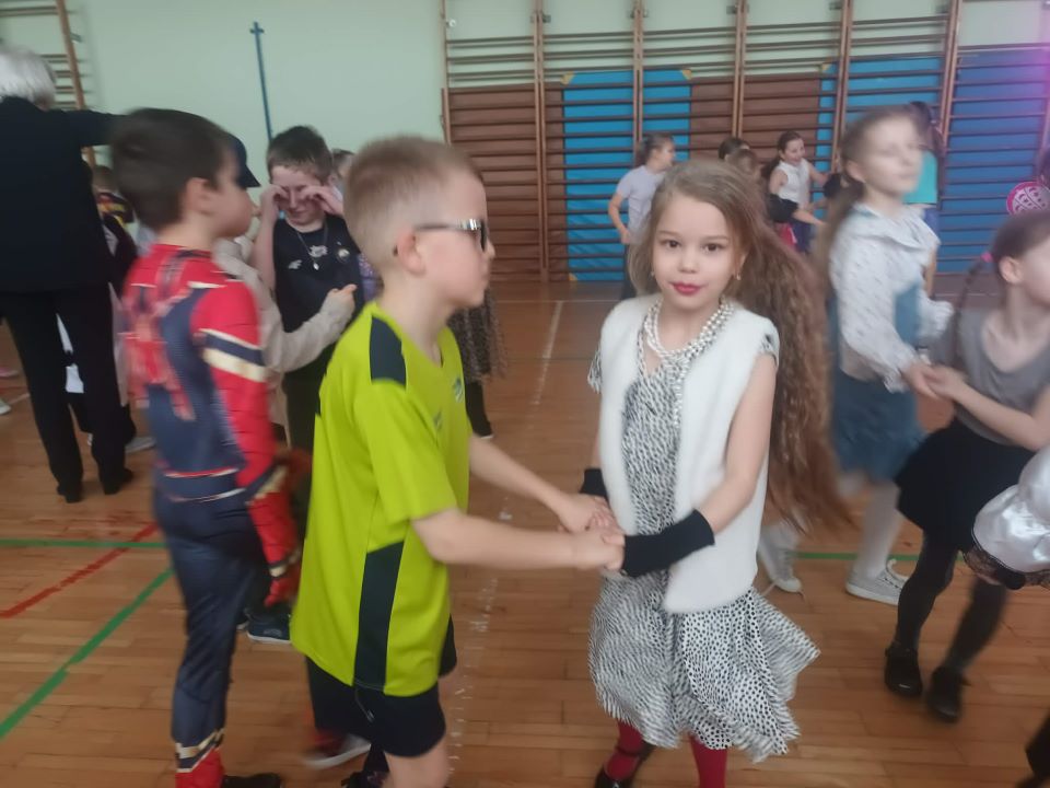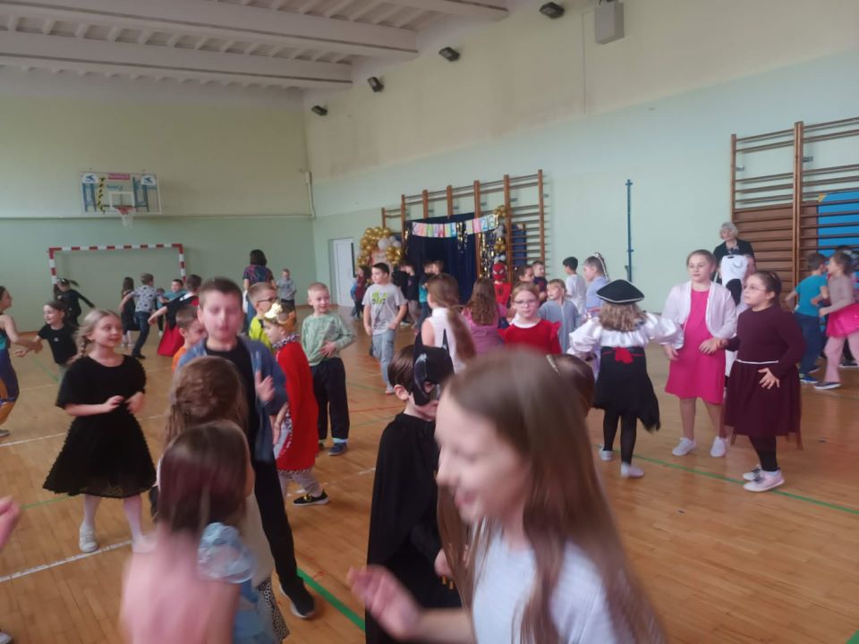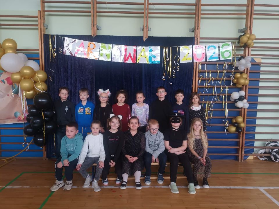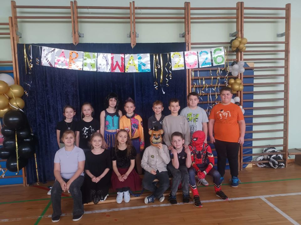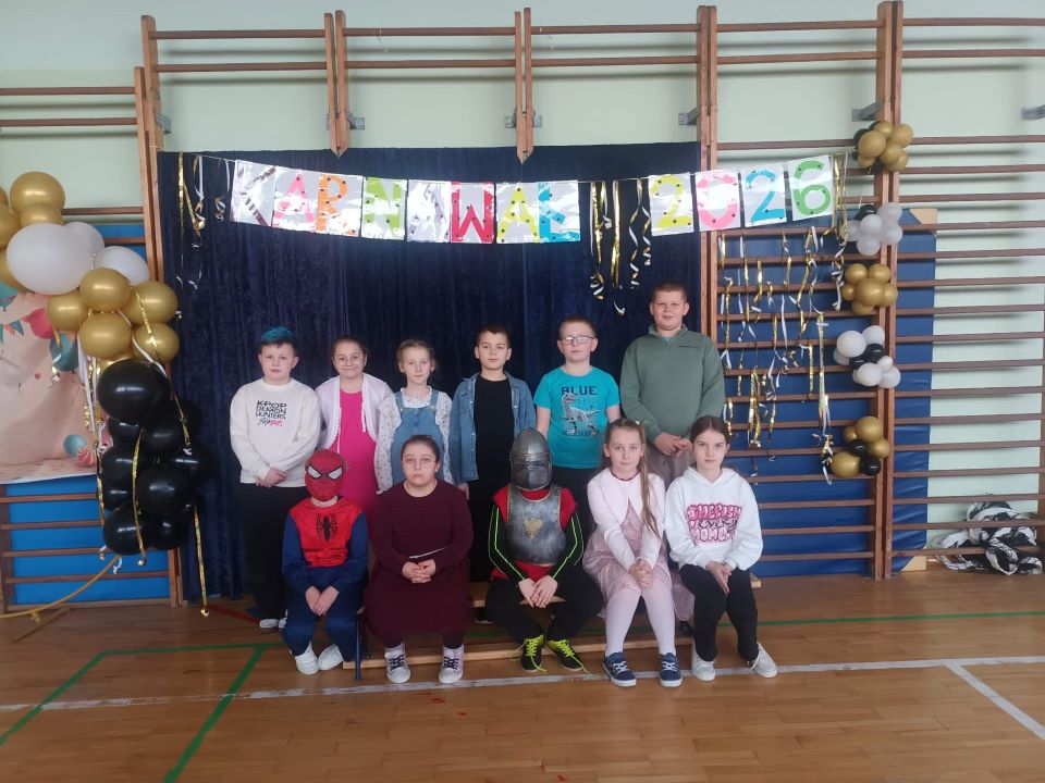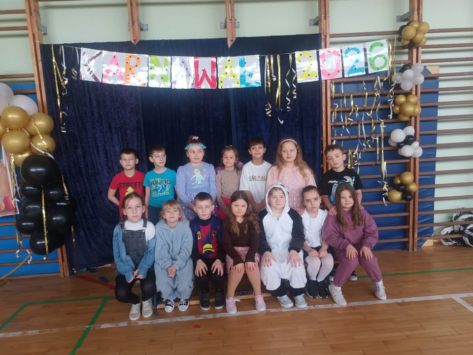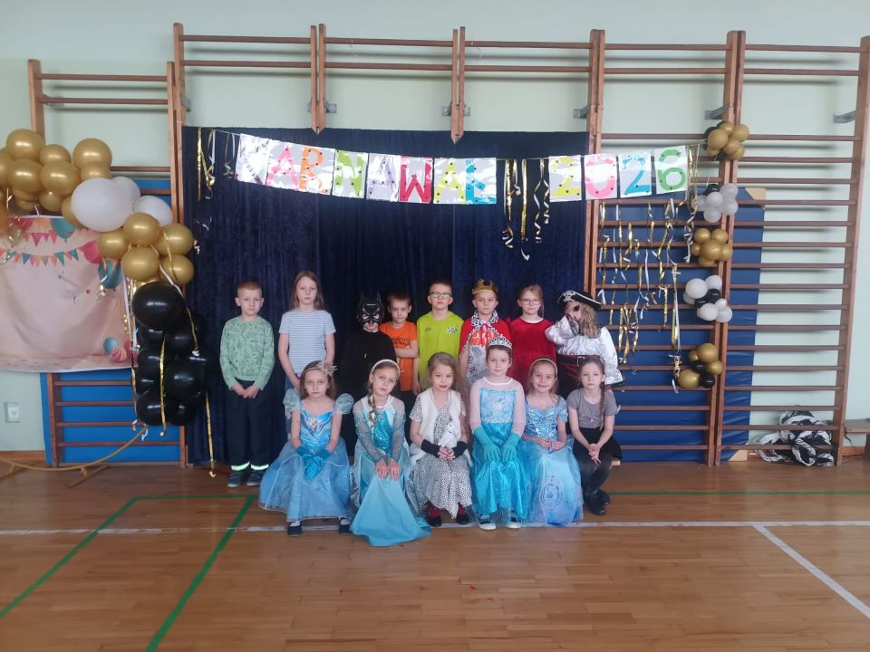 Bal karnawałowy to szczególny dzień, często wyczekiwany przez dzieci. Jest atrakcją, która dostarcza sporo przeżyć i radości. Tak też było 11 lutego 2026 r. w naszej szkole, gdzie odbył się bal karnawałowy dla klas 1-3. Tego dnia sala gimnastyczna zamieniła się w prawdziwą salę balową przyozdobioną w różnokolorowe łańcuchy, serpentyny i balony. Dzieci wystąpiły w ciekawych, kolorowych kostiumach, przebrane za bohaterów znanych bajek i nie tylko. Nie sposób zliczyć i wymienić tych wszystkich postaci, niektórzy byli nie do poznania. Tańce i zabawy przy muzyce prowadzili panowie animatorzy, którzy zachęcali do wspólnej zabawy wszystkie dzieci oraz ich wychowawczynie. Były więc tańce w parach, a także wspólne w kole, np.: Belgijka i pociąg. Dziękujemy rodzicom za zaangażowanie w przygotowanie pięknych balowych strojów. Dzień ten dostarczył dzieciom wielu przeżyć i miłych wrażeń. Opracowała Marta Szeliga