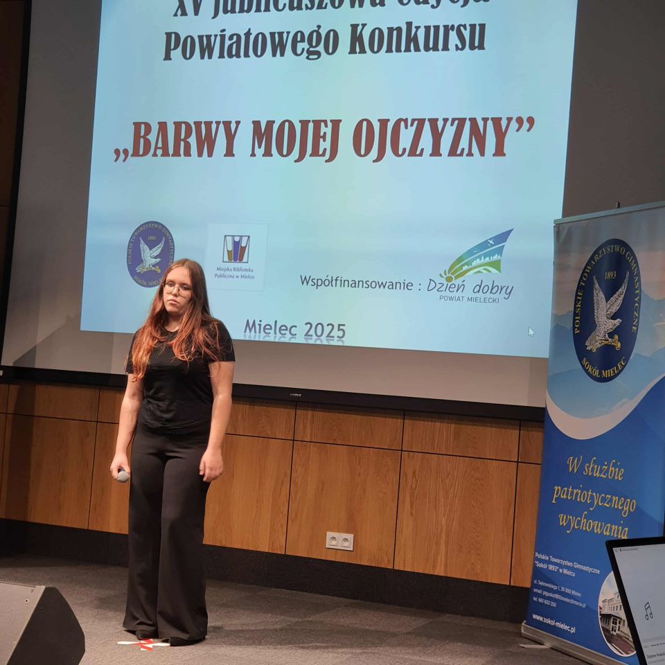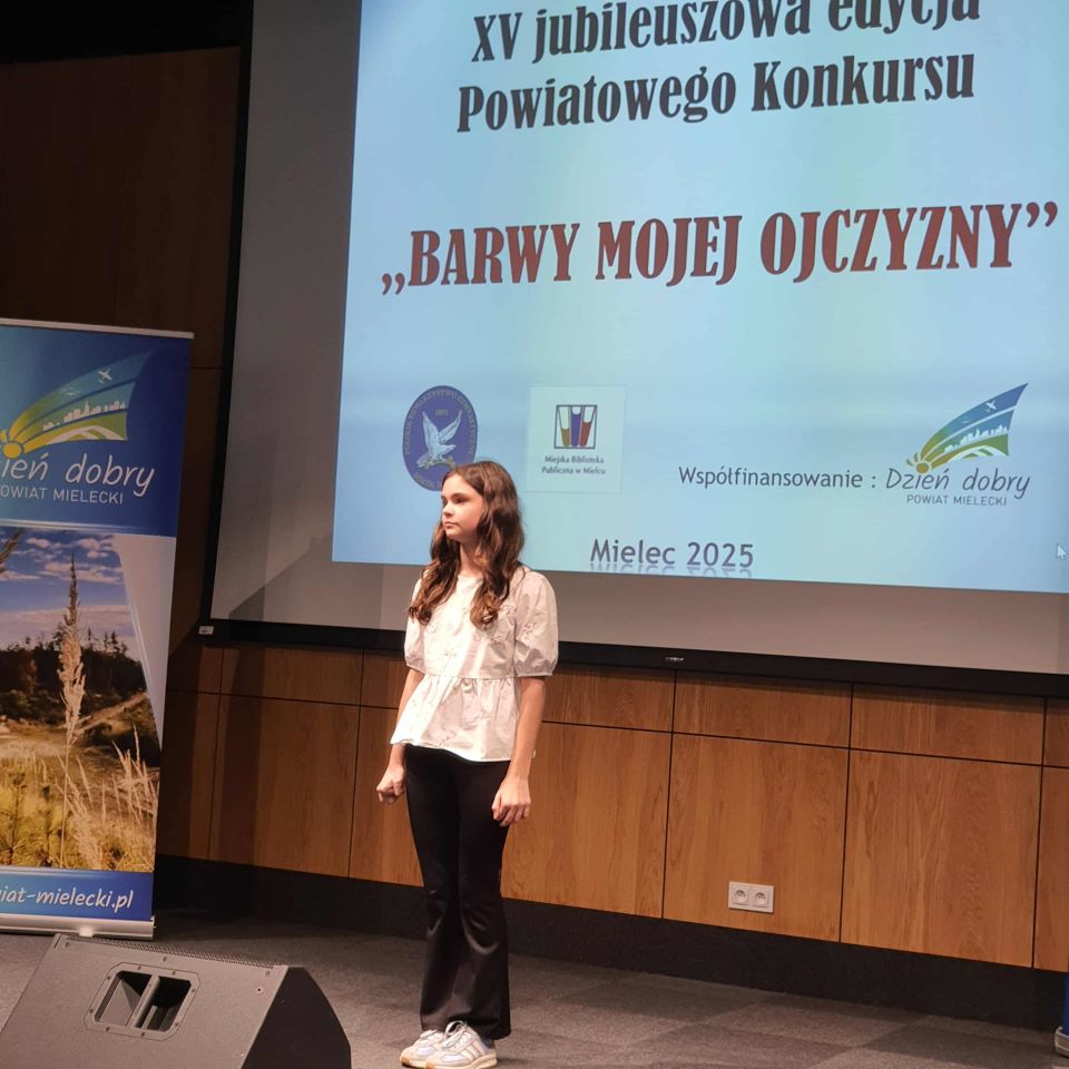 21 października odbyła się XV jubileuszowa edycja Powiatowego Konkursu „Barwy Mojej Ojczyzny”. Przesłuchania miały miejsce w gmachu Miejskiej Biblioteki Publicznej w Mielcu. Naszą szkołę reprezentowały dwie uczennice. W kategorii recytacja Daria Dziewit z klasy VII, która wyrecytowała wiersz Katarzyny Grochowskiej „Co to jest Polska?” Natomiast w kategorii śpiew wystąpiła Lena Stefaniak, uczennica klasy VIII z piosenką Zbigniewa Wodeckiego „Lubię wracać tam, gdzie byłem już”. Obie uczennice zaprezentowały swój kunszt i talent zarówno w recytacji jak i w piosence, jednak konkurencja była duża i nie udało się zająć czołowych miejsc. Mimo tego doceniamy poświęcony czas na przygotowania do występu, pokonanie tremy i godne reprezentowanie naszej szkoły i życzymy dalszych sukcesów na niwie wokalno- recytatorskiej. Opracowała Renata Bartkowicz