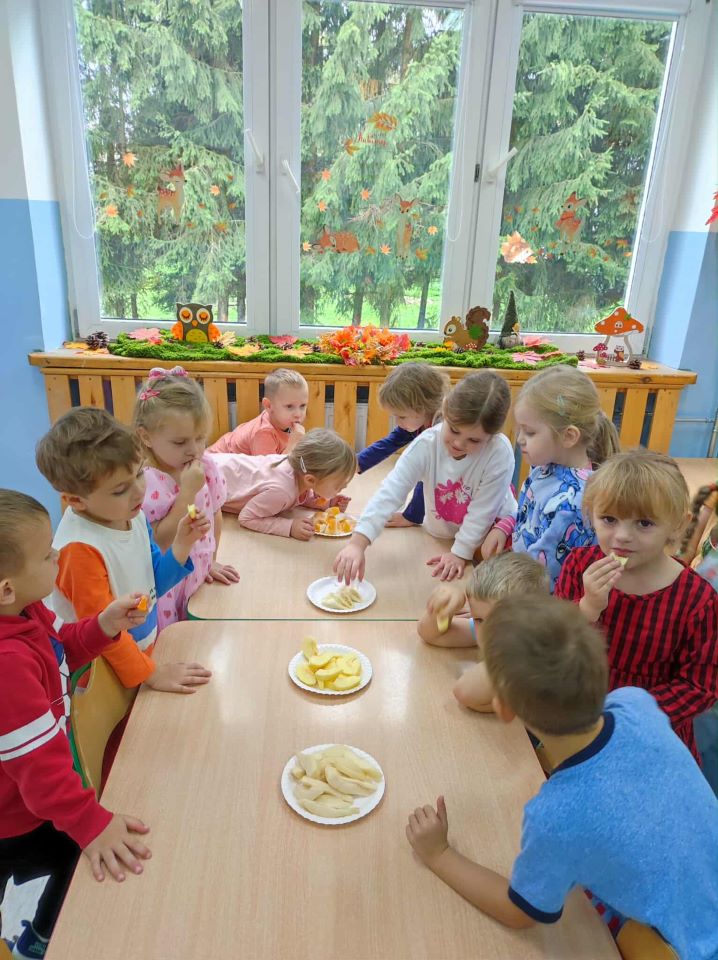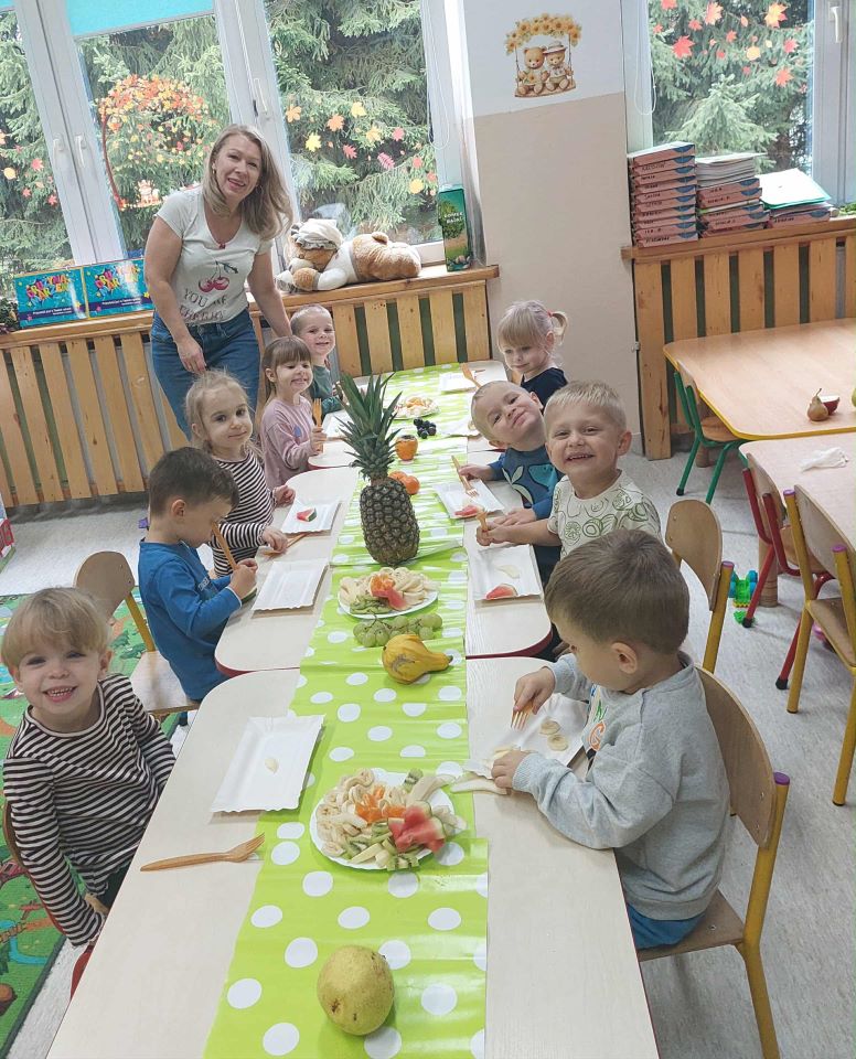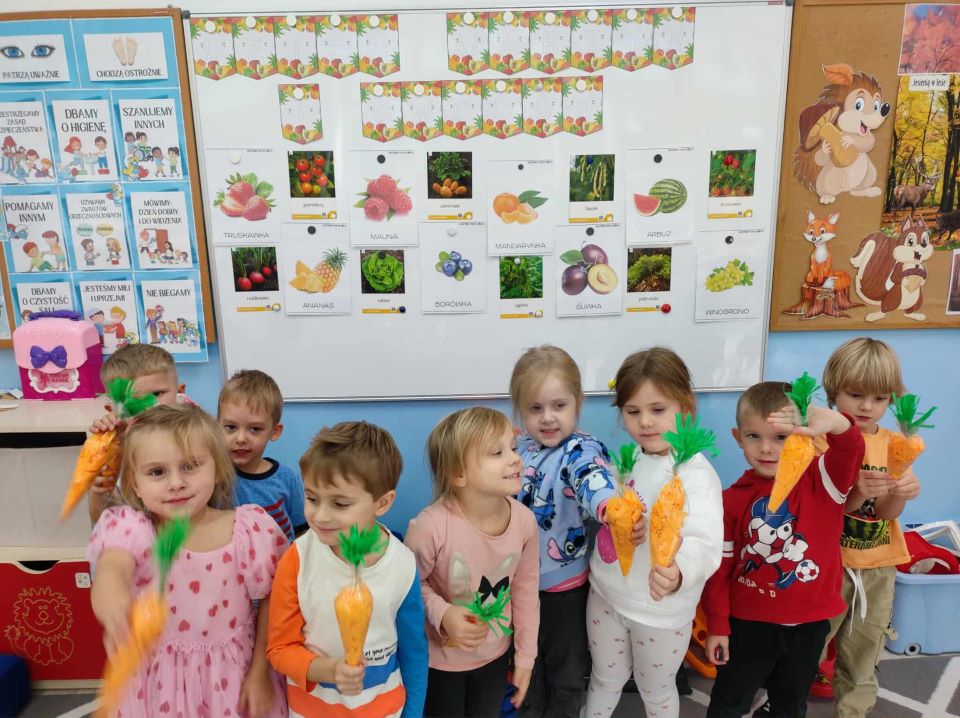 17 października w oddziałach przedszkolnych Misiów, Smerfów i Tygrysków obchodziliśmy Dzień Owoców I Warzyw. Dzieci poznawały owoce i warzywa wszystkimi zmysłami: wzrokiem, węchem, smakiem, dotykiem a nawet słuchem. Przedszkolaki dowiedziały się jak warzywa i owoce zdrowo oddziałują na nasze samopoczucie. Były też zabawy, piosenki i konkursy związane z tematyką dnia. To był wesoły i smaczny sposób na naukę zdrowego odżywiania! Opracowała Jadwiga Burczy