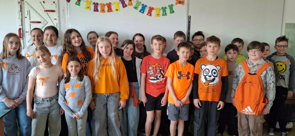 Nasza szkoła corocznie w lutym i marcu obchodzi Dni Bezpiecznego Internetu. W tym czasie uczniowie klas I–VIII biorą udział w różnych działaniach edukacyjnych, które mają na celu zwiększenie świadomości na temat bezpieczeństwa w sieci oraz odpowiedzialnego korzystania z Internetu. W tym roku uczniowie uczestniczyli w webinarach i kursach poruszających bardzo ważne tematy, takie jak: hejt i przemoc w sieci, pułapki sztucznej inteligencji, a także dane i wizerunek w sieci. Zajęcia te pomogły uczniom zrozumieć, jakie zagrożenia mogą pojawić się w Internecie oraz jak reagować na agresywne zachowania w sieci. Również cała społeczność szkolna, na zaproszenie uczniów i pedagogów Szkoły Podstawowej nr 3 im. Wojska Polskiego w Mielcu, przyłączyła się do akcji #niehejtuje, która ma na celu walkę z narastającym zjawiskiem hejtu i cyberprzemocy wśród dzieci i młodzieży. W dniu 25 marca każdy z nas postarał się ubrać na pomarańczowo – wystarczył jeden element stroju, np. koszulka, chusta lub wstążka. Pomarańczowy kolor był symbolem odwagi, empatii oraz bezpieczeństwa w sieci. W ramach akcji obejrzeliśmy również film „Lustro”, związany z tematyką hejtu i przemocy w Internecie, który przygotowali uczniowie SP nr 3 w Mielcu. Po projekcji filmu w klasach odbyły się rozmowy i dyskusje z wychowawcami na temat jego przesłania, emocji oraz sposobów reagowania na hejt i niewłaściwe zachowania w sieci. Mamy nadzieję, że zdobyta wiedza i wspólne działania przyczynią się do tego, że Internet będzie dla wszystkich miejscem bardziej bezpiecznym i przyjaznym.