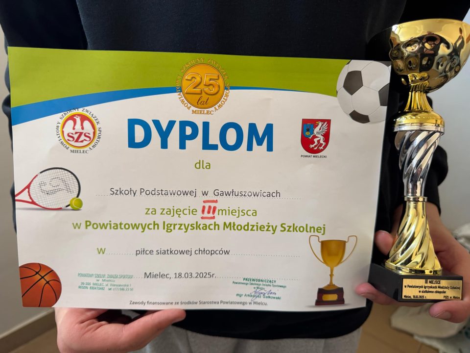 Świetny występ siatkarzy z SP Gawłuszowice w finale powiatowym Igrzysk Młodzieży Szkolnej. Gawłuszowice 3 szkołą w powiecie mieleckim. Bardzo wyrównany i mocny finał w piłce siatkowej, trzy szkoły z taką samą liczbą punktów w tym SP Gawłuszowice. W ostatecznym rachunku decydowała ilość wygranych setów. Najlepszym zawodnikiem całych zawodów został nasz uczeń Konrad Świtek. Duże gratulacje dla naszych uczniów.