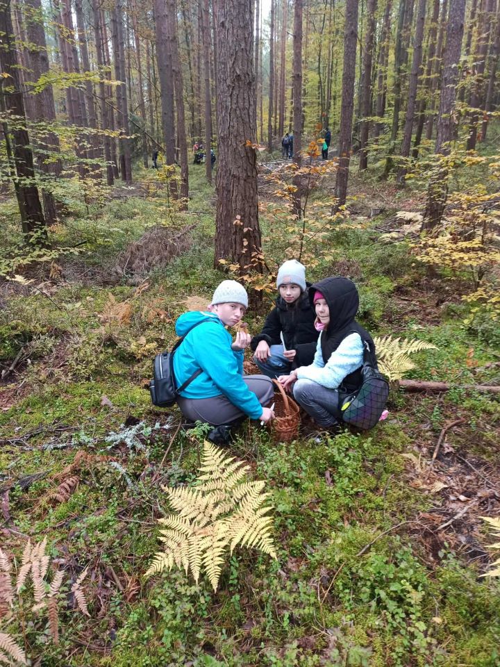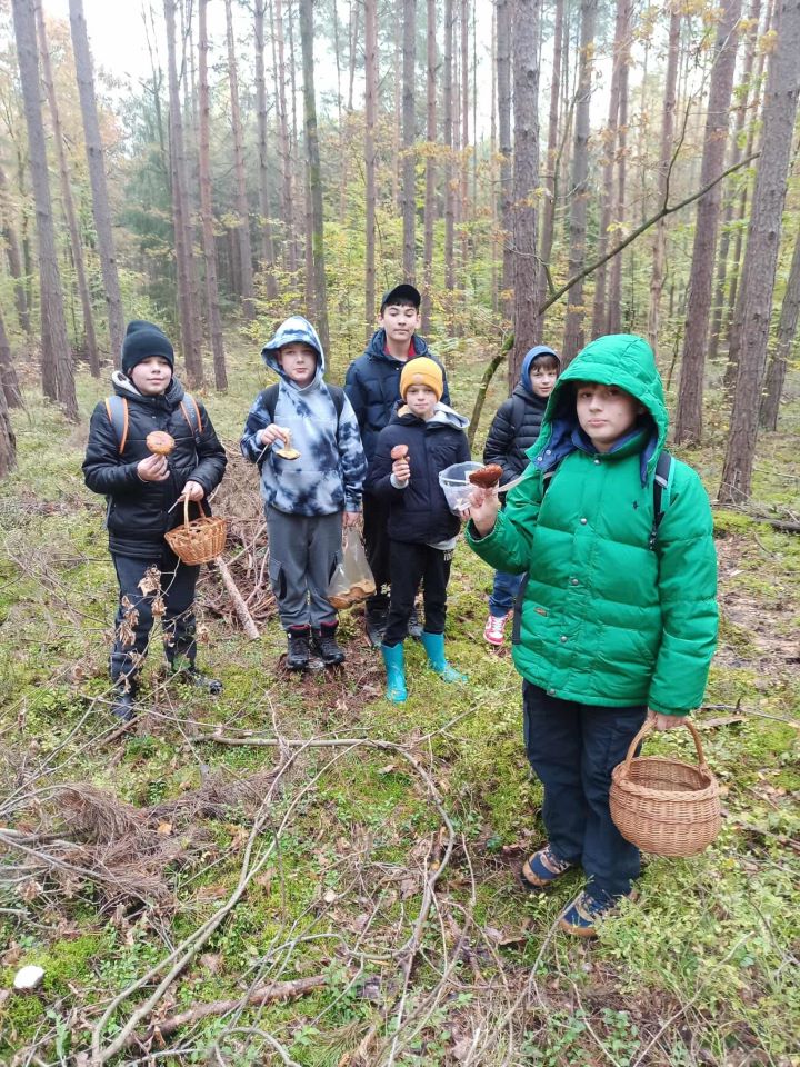 W dniu 16 października uczniowie klasy szóstej wraz z wychowawcą wybrali się do lasu na wspólne grzybobranie. Celem wyjazdu było nie tylko poznanie różnych gatunków grzybów, ale także spędzenie czasu na świeżym powietrzu i integracja klasy. Uczniowie znajdowali podgrzybki i prawdziwki, a emocji przy tym było co niemiara. Po zakończonym grzybobraniu, przy ognisku, na którym piekliśmy kiełbasę i chleb dzieliliśmy się wrażeniami. Było dużo śmiechu, rozmów i wspólnych zabaw. Wycieczka była bardzo udana. Wszyscy wróciliśmy zmęczeni, ale zadowoleni i pełni wrażeń. Zgodnie uznaliśmy, że w przyszłym roku szkolnym również jedziemy do lasu na grzyby. Bardzo dziękuję rodzicom, którzy zaangażowali się w realizację tego wyjazdu, za pomoc przy przygotowaniu posiłku i miło spędzony czas. Opracowała Alicja Stec