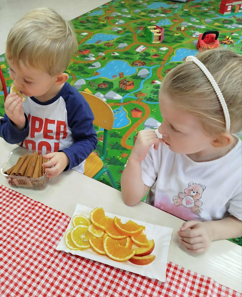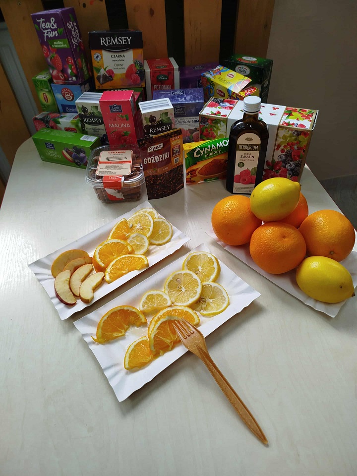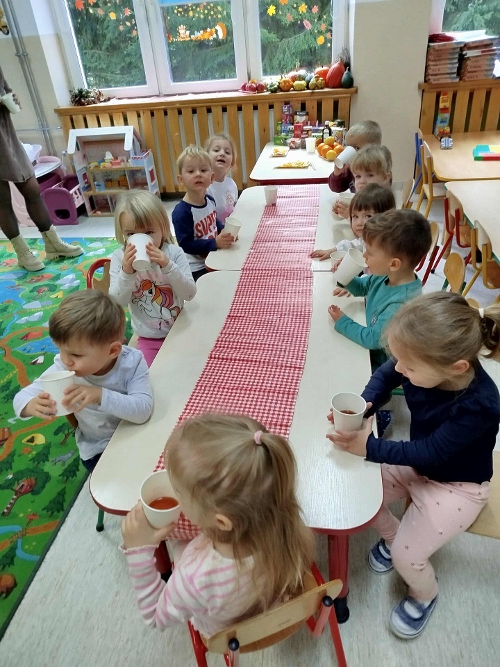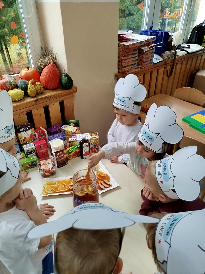 Ostatnio w przedszkolu zrobiło się naprawdę aromatycznie. Dzieci przygotowały własną jesienno-zimową herbatkę pełną aromatów i witamin. Przedszkolaki mogły powąchać przyprawy i owoce oraz spróbować ich smaku. Wśród dodatków znalazły się: goździki, cynamon, cytryny, pomarańcze, jabłka, syrop malinowy. Było pachnąco, zdrowo i jesiennie. Opracowała Justyna Forczek