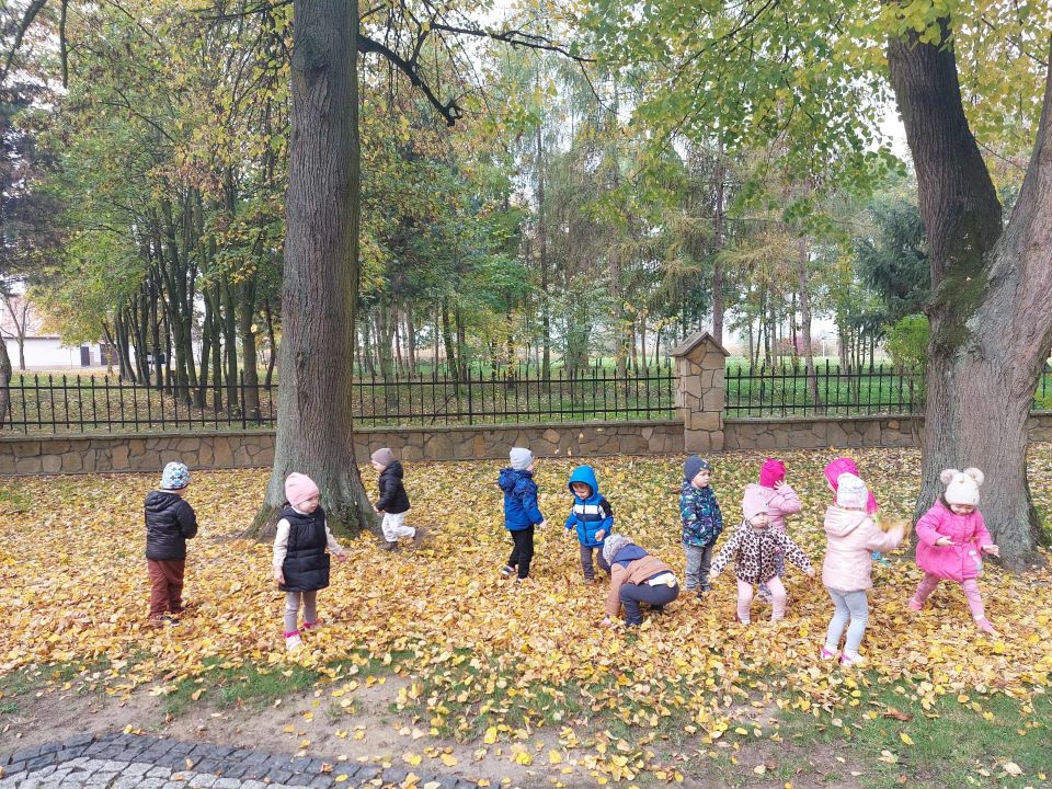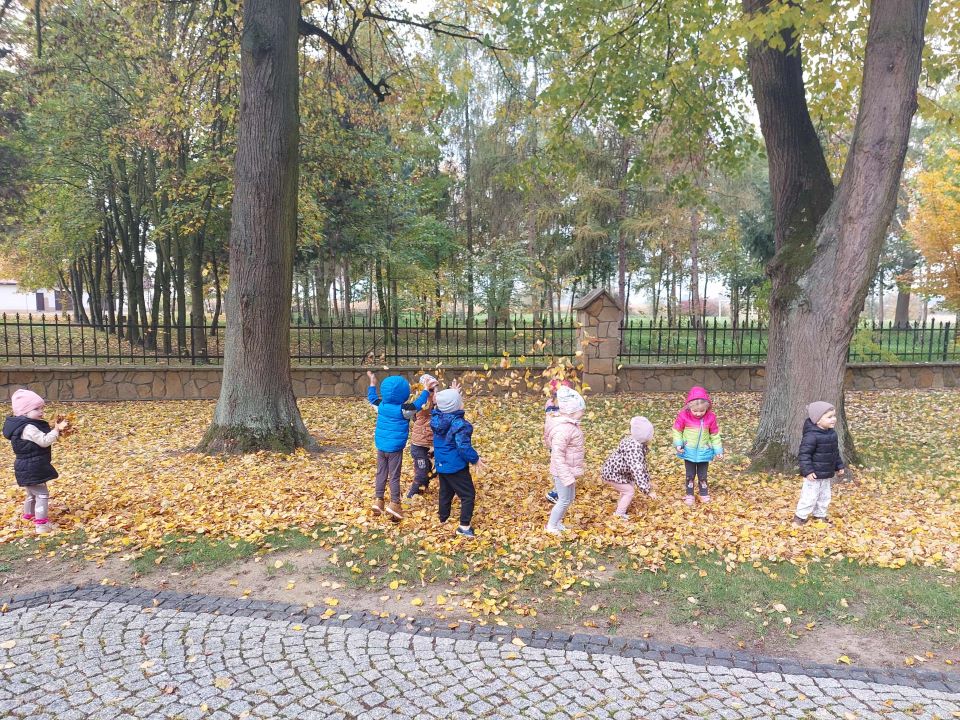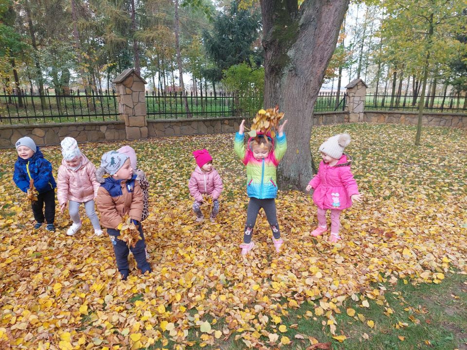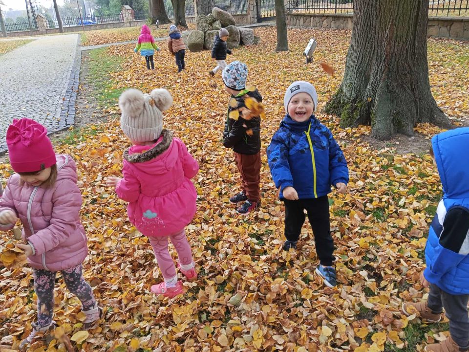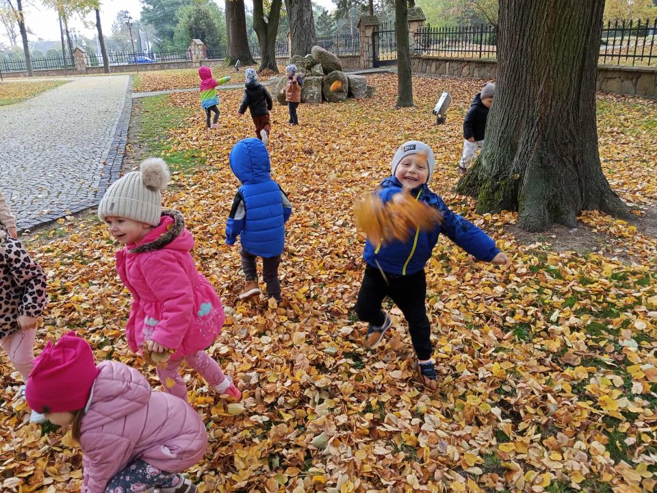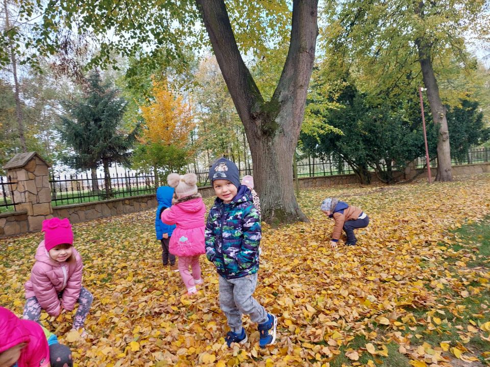 Jesień to taka piękna pora roku, kiedy krajobraz bawi się z nami ciepłymi barwami: czerwienią, żółcią, pomarańczą, brązem. Misie zachwycił ten magiczny jesienny czas…… Oprócz świetnej zabawy, dzieci poznawały kolory, podziwiały piękno jesiennej przyrody, słuchały jej odgłosów, poznawały drzewa i ich liście i przyglądały się skaczącym po drzewach wiewiórkom. Opracowała Jadwiga Burczy