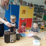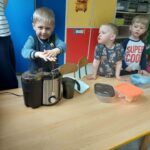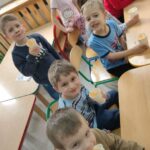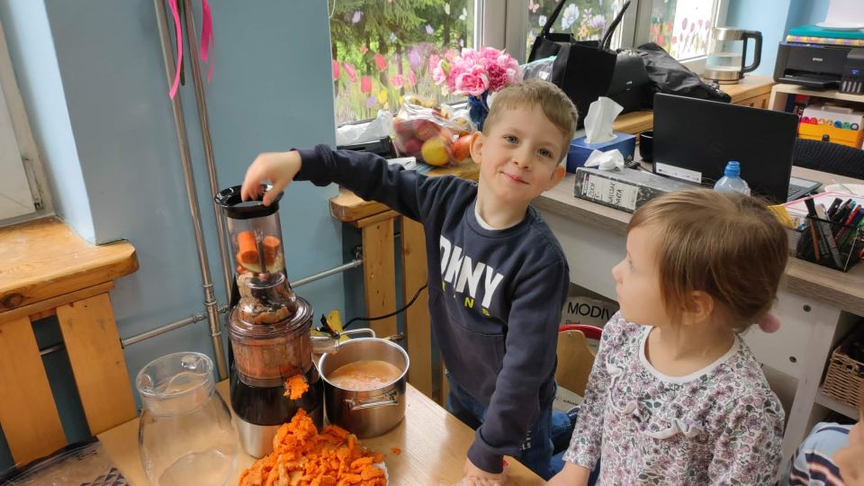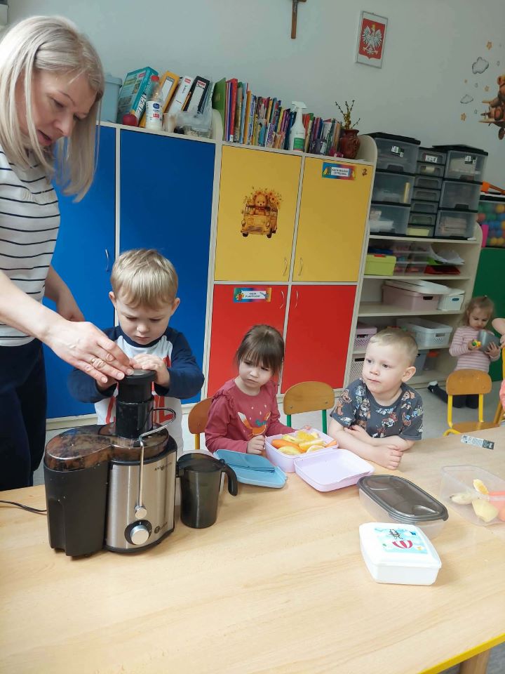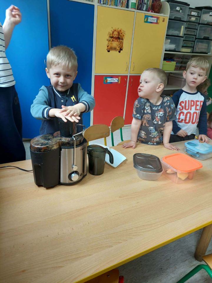 W naszym przedszkolu zrobiło się ostatnio bardzo kolorowo i zdrowo! Wszystko za sprawą zajęć, podczas których dzieci przygotowywały pełne witamin posiłki i napoje. Dzieci z grupy „Smerfy” przygotowały zdrowe śniadanie. Z zaangażowaniem komponowały swoje posiłki, ucząc się przy tym zasad zdrowego odżywiania. Następnie wspólnie z „Misiami” przygotowały świeżo wyciskany sok z marchewki oraz różnych owoców. Sam proces wyciskania soku wzbudził wiele emocji i radości, a efekt końcowy zachwycił wszystkich swoim smakiem. Mali kucharze przekonali się, że zdrowe napoje mogą być nie tylko wartościowe, ale również bardzo smaczne. Zajęcia tego typu są doskonałą okazją do nauki poprzez zabawę. Dzieci rozwijają samodzielność, uczą się współpracy oraz poznają znaczenie zdrowych wyborów żywieniowych w codziennym życiu. To był dzień pełen uśmiechu, dobrej energii i… witamin! Oprac. M. Walczak