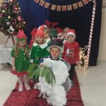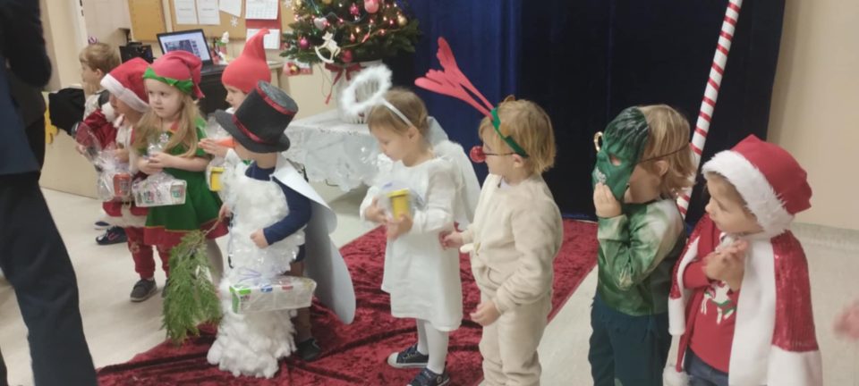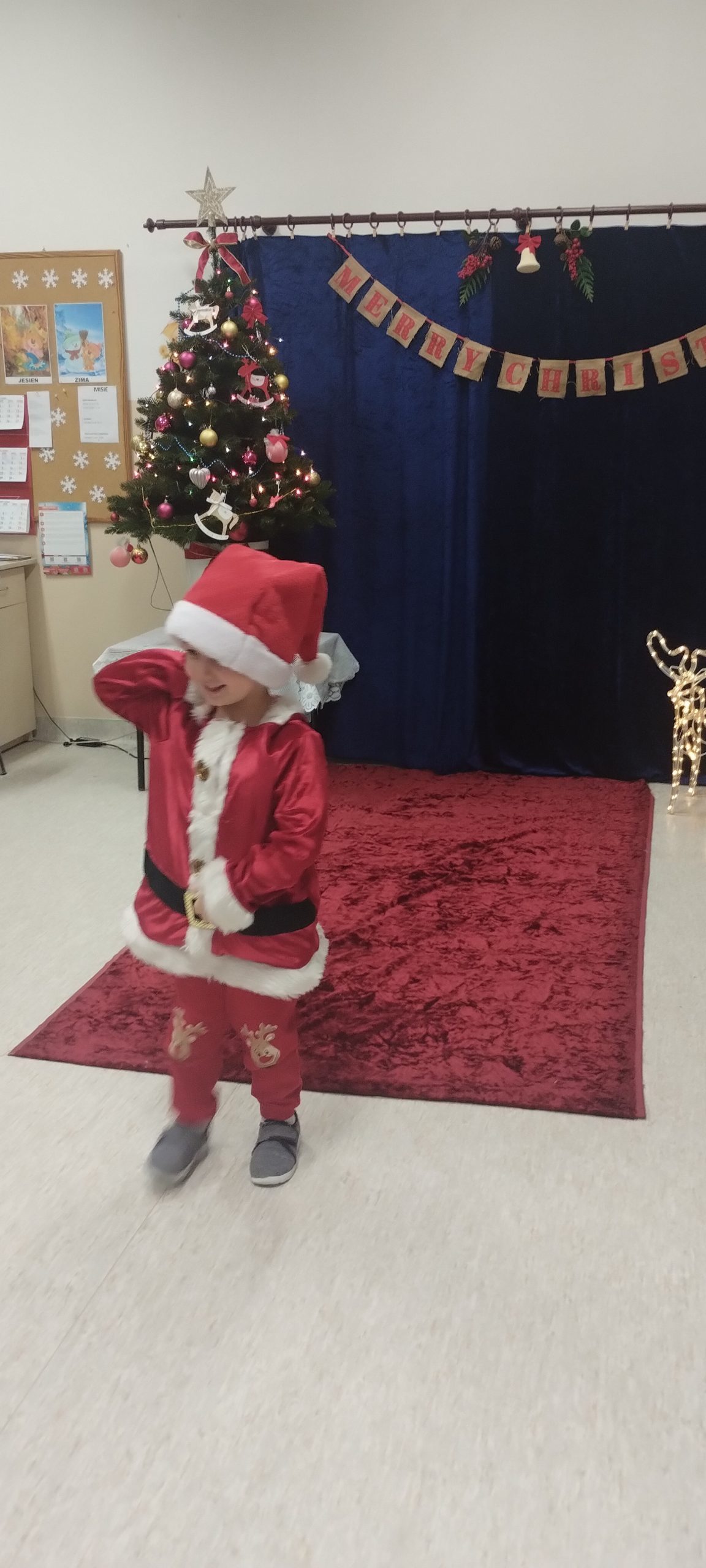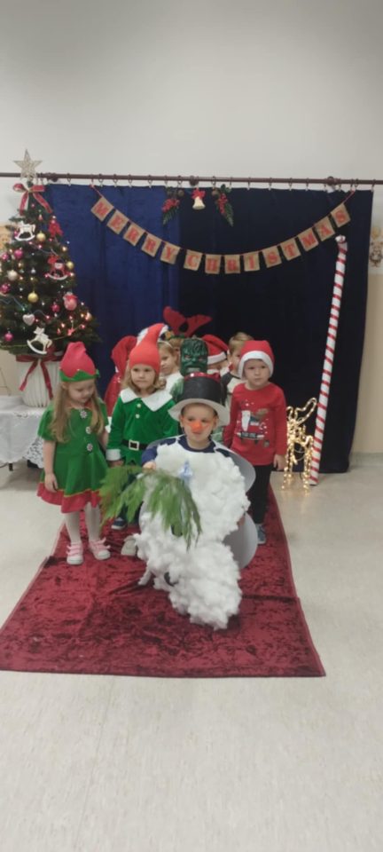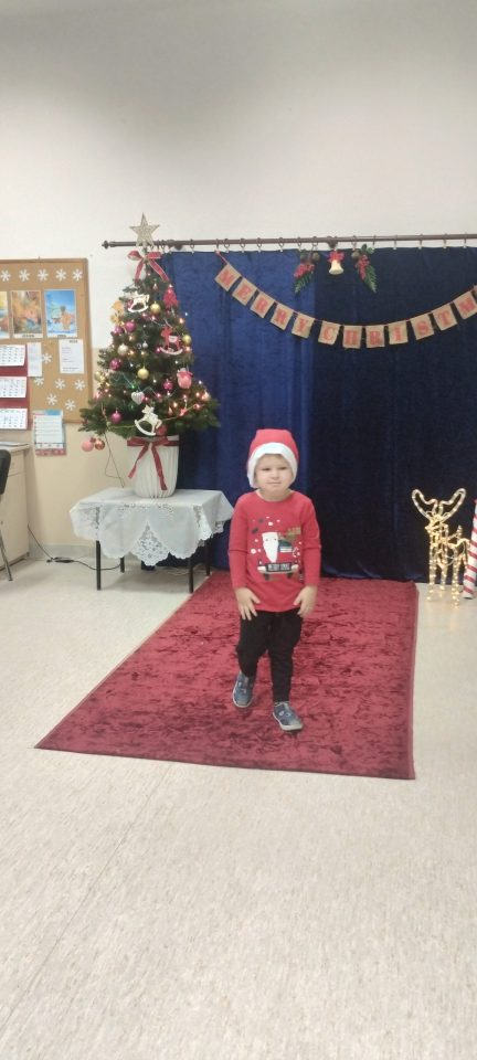 W dniu 18.12.2024 r. w grupie Misie odbył się konkurs na najciekawsze przebranie świąteczne. Prawie wszystkie maluszki wzięły w nim udział. Pierwsze miejsce zajął bałwanek Krzysztof Hajnas, reszta uczestników (aniołek, elfy , renifer, mikołaje oraz Grinch) została wyróżniona. Wszyscy otrzymali dyplomy oraz nagrody rzeczowe. Opracowała Jadwiga Burczy