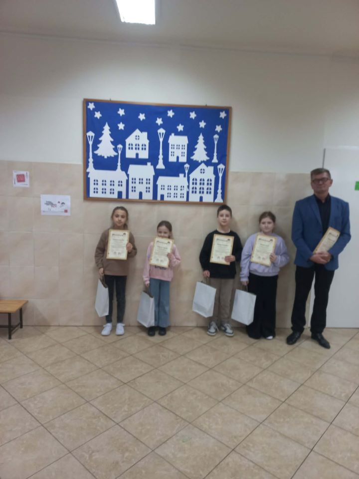Wręczenie nagród, które zostały ufundowane przez Radę Rodziców naszej szkoły odbyło się 12 grudnia 2025r. Wyróżnieni uczniowie otrzymali dyplomy i nagrody rzeczowe, a pozostali nagrody pocieszenie. Dziękujemy wszystkim uczestnikom, którzy podjęli wyzwanie i spróbowali swoich sił w konkursie. Opracowała Marta Szeliga