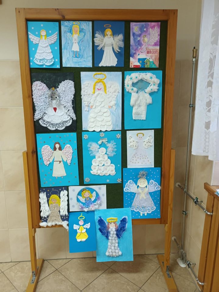 Bożonarodzeniowe szopki, Mikołaje, choinki, aniołki to niezbędny element, który wprowadza nas w wyjątkowy nastrój i pozwoli poczuć magię świąt. Dlatego też w naszej szkole nie mogło obyć się bez konkursu z tej okazji. W pierwszym tygodniu grudnia uczniowie klas 1-3 wzięli udział w Szkolnym Konkursie Plastycznym „Świąteczny Aniołek”. Dzieci z przygotowanych materiałów samodzielnie zaprojektowały i wykonały różnorodne aniołki. Zainteresowanie konkursem było bardzo duże, gdyż wzięło w nim udział 55 dzieci. Komisja konkursowa stanęła przed naprawdę trudnym wyborem, gdyż prace, które otrzymała, były naprawdę przepiękne i wyjątkowe, wyróżniające się pomysłowością, oryginalnością oraz ciekawą techniką wykonania.