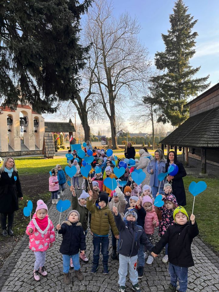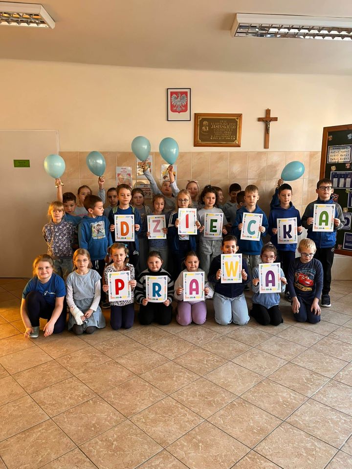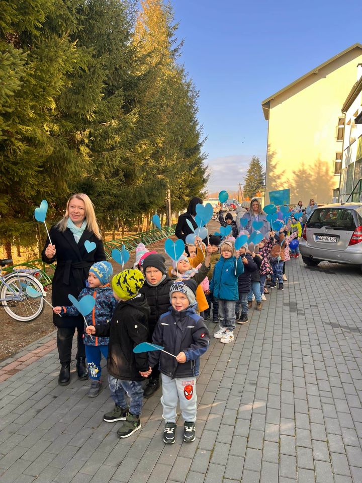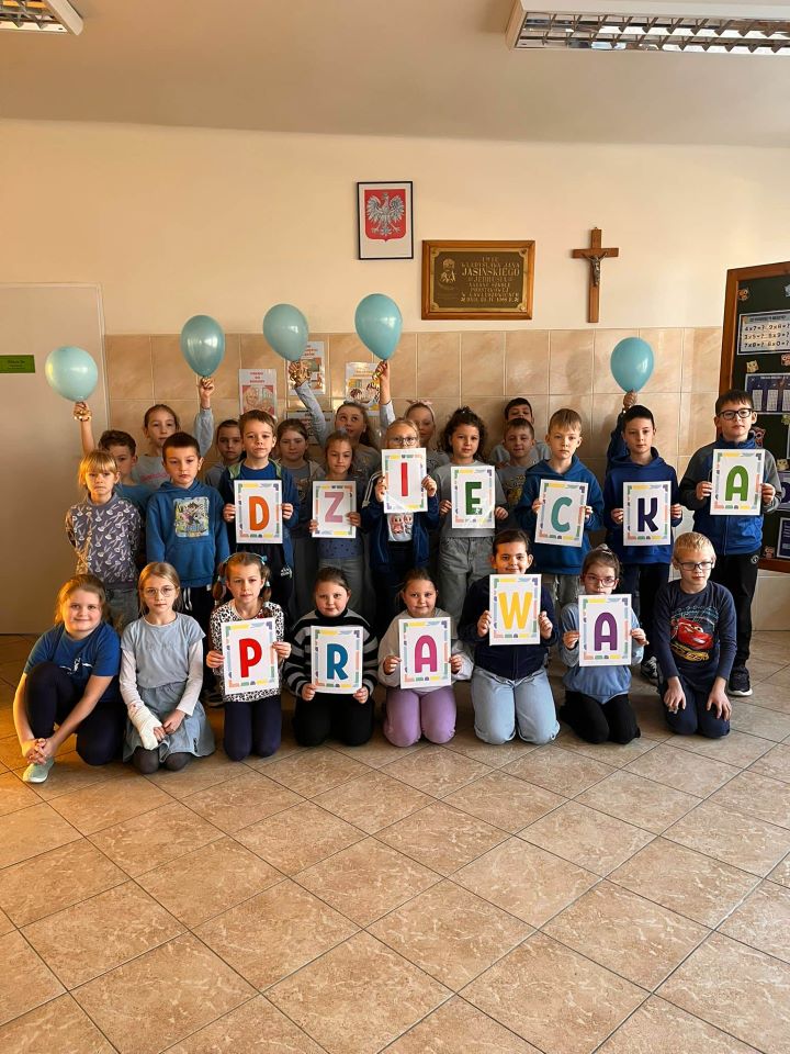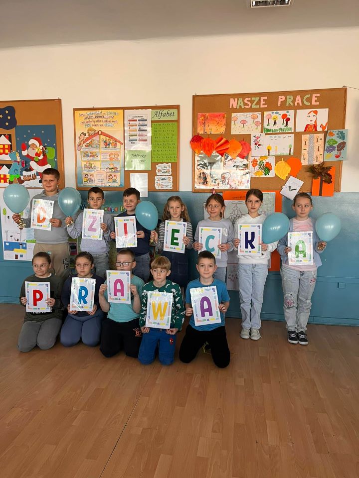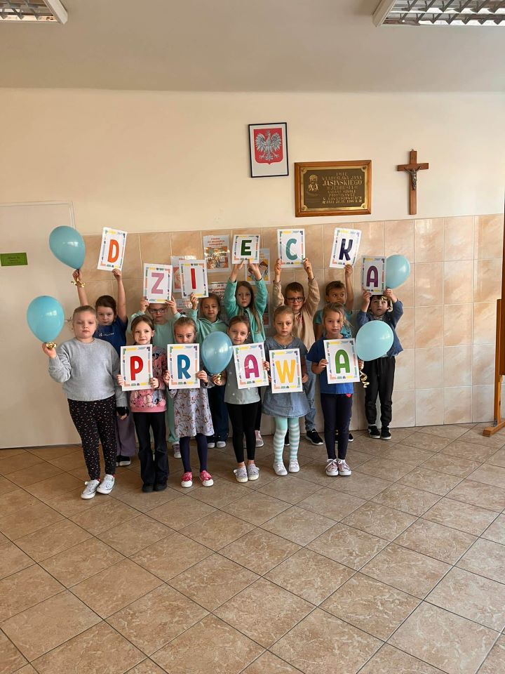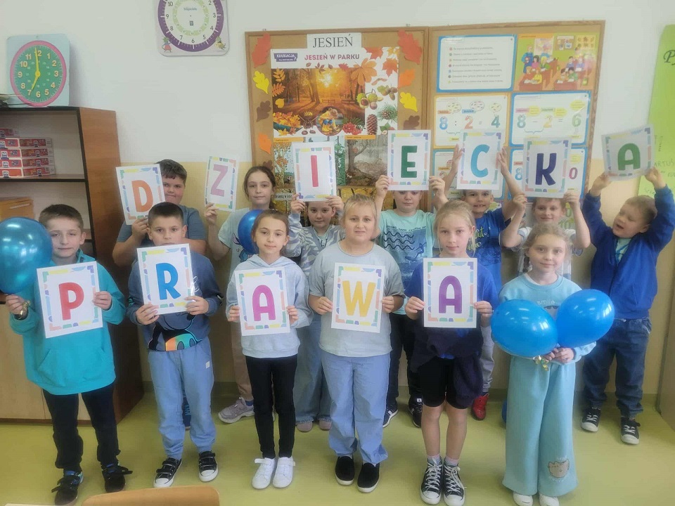W dniu 20 listopada obchodziliśmy Międzynarodowy Dzień Dziecka, który upłynął nam pod znakiem solidarności z dziećmi na całym świecie. Z tej okazji przypomnieliśmy sobie, jak ważne są bezpieczeństwo, szacunek i równe szanse dla każdego dziecka. Przedszkolaki wzięły udział w uroczystym przemarszu z niebieskimi balonami, transparentami i serduszkami niosąc radość oraz ważne przesłanie o prawach dziecka. Kolor niebieski – symbol UNICEF – towarzyszył nam na każdym kroku. Na korytarzach pojawiły się tematyczne gazetki dotyczące zarówno praw, jak i obowiązków dzieci. W klasach odbyły się również:
