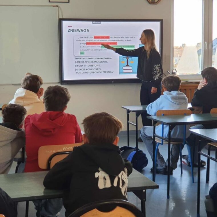 Serdecznie dziękujemy pani adwokat Annie Pazdro za inspirujące spotkanie, poświęcony czas i cenne wskazówki. Dzięki takim inicjatywom młodzież może lepiej zrozumieć, jak ważne są świadomość prawna, odpowiedzialność i wzajemny szacunek – zarówno w świecie rzeczywistym, jak i wirtualnym.