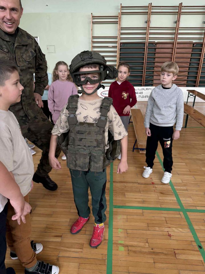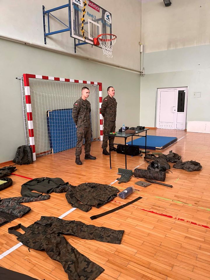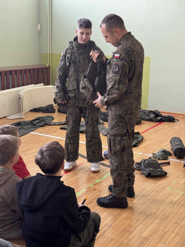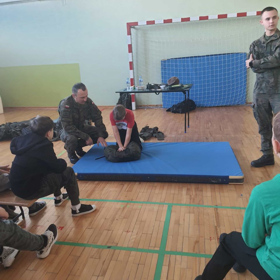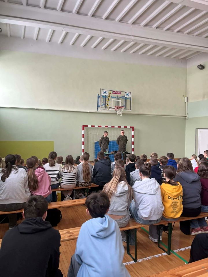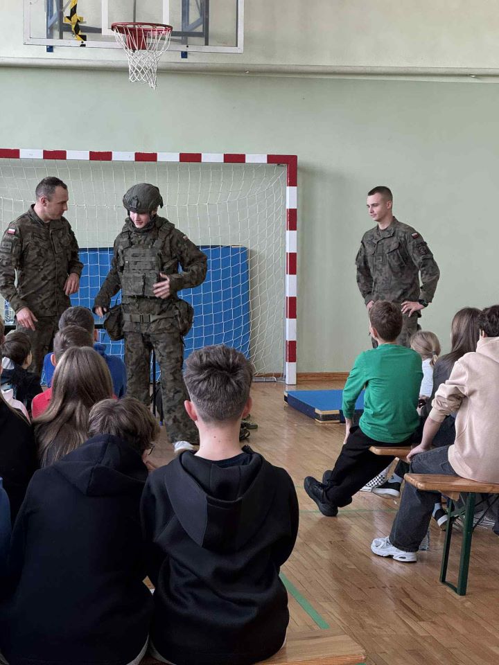 24 listopada w naszej szkole odbyło się wyjątkowe spotkanie z żołnierzami 33. Batalionu Lekkiej Piechoty, wchodzącego w skład 3. Podkarpackiej Brygady Obrony Terytorialnej. Celem wizyty było przybliżenie uczniom roli i codziennych działań współczesnego Wojska Polskiego oraz zaprezentowanie, jak wygląda służba w formacji Obrony Terytorialnej. Podczas spotkania żołnierze opowiedzieli o swoich obowiązkach, zadaniach realizowanych przez wojsko oraz o tym, jak funkcjonuje batalion lekkiej piechoty. Uczniowie mieli okazję dowiedzieć się, dlaczego obecność wojska jest tak ważna dla bezpieczeństwa państwa i jak wygląda szkolenie żołnierzy. W programie znalazły się również pokazy pierwszej pomocy przedmedycznej, w trakcie których młodzież mogła poznać podstawowe zasady udzielania pomocy w sytuacjach zagrożenia życia. Dużym zainteresowaniem cieszyły się też ćwiczenia musztry, które pozwoliły poznać elementy wojskowej dyscypliny i współpracy w grupie. Spotkanie odbyło się w ramach programu Ministerstwa Edukacji Narodowej i Ministerstwa Obrony Narodowej „Edukacja z wojskiem” i było dla naszych uczniów ciekawą lekcją, łączącą edukację obywatelską, bezpieczeństwo oraz wychowanie patriotyczne. Serdecznie dziękujemy żołnierzom 33. Batalionu Lekkiej Piechoty za poświęcony czas, profesjonalizm i zaangażowanie.