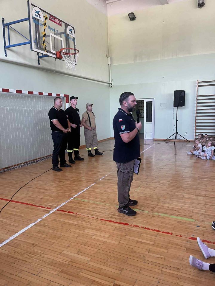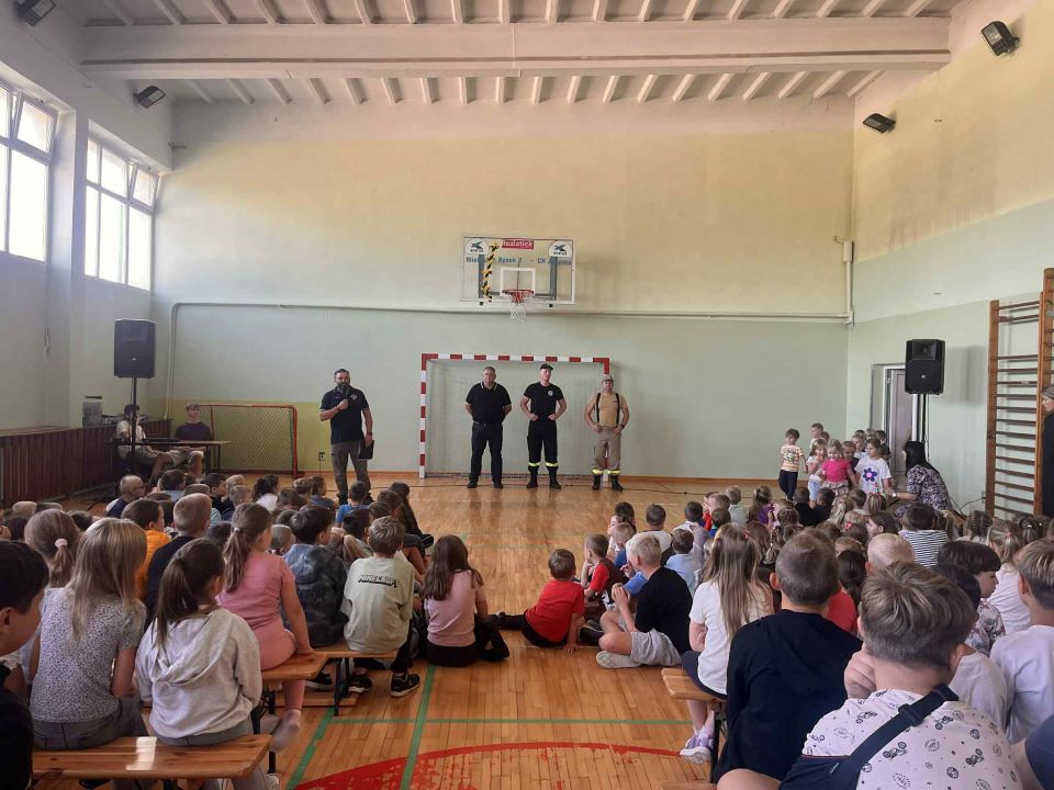 Dzisiaj w naszej szkole odbyło się spotkanie ze strażakami, którzy przeprowadzili ciekawą i bardzo pouczającą prelekcję na temat zasad zachowania się podczas wystąpienia zagrożenia oraz prawidłowej ewakuacji. Przedszkolaki oraz uczniowie dowiedzieli się, jak ważne jest zachowanie spokoju, stosowanie się do poleceń nauczycieli oraz szybkie i sprawne opuszczenie budynku w wyznaczony sposób. Strażacy przypomnieli także o podstawowych zasadach bezpieczeństwa przeciwpożarowego i odpowiedzieli na pytania uczniów. Spotkanie było nie tylko lekcją wiedzy teoretycznej, ale również praktycznym przygotowaniem do sytuacji, w których właściwa reakcja może uratować zdrowie i życie. Dzięki takim zajęciom uczniowie zyskali większą świadomość i pewność, jak zachować się w razie zagrożenia. Serdecznie dziękujemy Koordynatorowi Wojewódzkiemu panu Markowi Czerwiowi z Jaślan, Komendantowi OSP z Gawłuszowic panu Henrykowi Mazurowi oraz strażakom z OSP Wola Zdakowska panu Mariuszowi Świątkowi i Marcinowi Cebuli za poświęcony czas i podzielenie się swoją wiedzą oraz doświadczeniem.