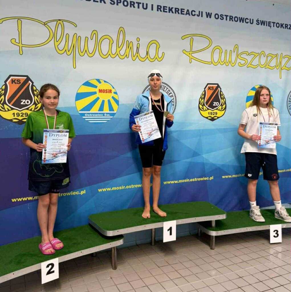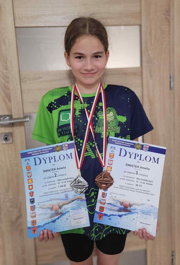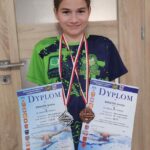 W zeszłym tygodniu odbyły się Letnie Mistrzostwa Okręgu Świętokrzyskiego w pływaniu w Ostrowcu Świętokrzyskim. W zawodach wystartowało blisko 150 zawodników z 10 klubów pływackich. Wśród zawodników znalazła się również nasza uczennica Amelia Świątek z klasy V, która trenuje w klubie Kajman w Połańcu. Zawodnicy startowali z podziałem na kategorie wiekowe 12/13 lat, 14/16 lat oraz Open. Amelia zdobyła dwa medale srebrny oraz brązowy w kategorii: