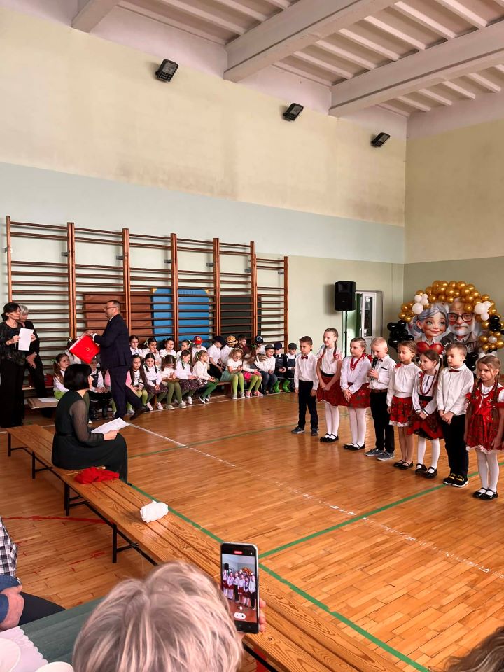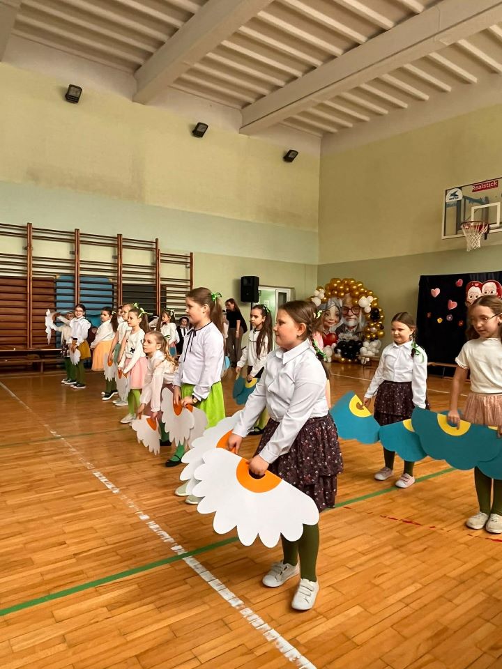 23 stycznia 2026 r. w naszej szkole świętowaliśmy Dzień Babci i Dziadka. Na tę uroczystość swoje Babcie i Dziadków zaprosili uczniowie klas I-III. Gościliśmy również Wójta Gminy Gawłuszowice Pana Bogusława Wojnarowskiego oraz Przewodniczącą Rady Rodziców SP w Gawłuszowicach Panią Małgorzatę Małek. Po uroczystym powitaniu gości Dyrektor SP w Gawłuszowicach Pan Grzegorz Nelec zaprosił wszystkich do obejrzenia programu artystycznego w wykonaniu uczniów, przygotowanych pod czujnym okiem wychowawczyń. Pokaz rozpoczął się od występu uczniów klasy 1 i uczniów klasy 2a i 2b, którzy w wierszach i przyśpiewce opowiedzieli historię jak babcia i dziadkiem się poznali i w sobie zakochali. Następnie uczniowie klas trzecich ubrani w pięknie stroje zatańczyli „Krakowiaka”, a uczniowie klas drugich zaprezentowali układ taneczny „Taniec kwiatów”. Nie zabrakło też piosenek o babci i dziadku w wykonaniu uczniów klas trzecich, a klasa 3b pokazała swój talent aktorski w inscenizacji na wesoło „Babcia i dziadek”. Piękne tańce nowoczesne przedstawiły również dziewczynki z grupy tanecznej Creative Soul Dance Academy działającej przy naszej szkole. Na zakończenie wszyscy wspólnie odśpiewali naszym najmilszym Gościom sto lat. Następnie Pani Małgorzata Małek i Wójt Pan Bogusław Wojnarowski złożyli szanownym gościom najserdeczniejsze życzenia, dzieci obdarowały swoje ukochane Babcie i wspaniałych Dziadków upominkami oraz laurkami, a Pan Wójt poczęstował wszystkich słodyczami. Spotkanie przy herbatce i słodkościach upłynęło w bardzo miłej i radosnej atmosferze. Serdeczne podziękowania kierujemy do Rodziców, którzy przygotowali słodki poczęstunek. Opracowała Anna Lubera