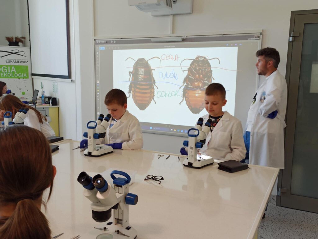 W dniach 21 i 22 maja uczniowie klas IV – VIII uczestniczyli w szkolnej wycieczce do Podkarpackiego Centrum Nauki „Łukasiewicz”, miejsca z nieograniczoną przestrzenią dla umysłu, dającą tyle możliwości, ile podpowie odważna wyobraźnia i niezaspokojona ciekawość odkrywcy. Niemal 200 interaktywnych ekspozycji, zgrupowanych w tematyczne wystawy, dała możliwość uczniom eksperymentowania i doświadczania otaczającego ich świata. Tematyka wystaw została powiązana z inteligentnymi specjalizacjami naszego regionu, takimi jak: lotnictwo i kosmonautyka, jakość życia, informacja i telekomunikacja. Kolejnym i głównym punktem wyjazdu były warsztaty laboratoryjne z chemii, biologii, fizyki i robotyki podczas których uczniowie, pod okiem instruktorów, samodzielnie przeprowadzali ciekawe eksperymenty i doświadczenia, poznali właściwości różnych substancji i obserwowali reakcje i doświadczenia chemiczne i fizyczne, mogli obserwować między innymi jak wygląda świat pod mikroskopem, budowali roboty i programowali je według własnego uznania. W pracowni FABlab mogli zaprojektować i wykonać niemal każdy projekt. Fascynująca wędrówka po świecie nauki, gdzie można wszystkiego dotknąć, sprawdzić dostarczyła naszym uczniom wiele niezapomnianych wrażeń.