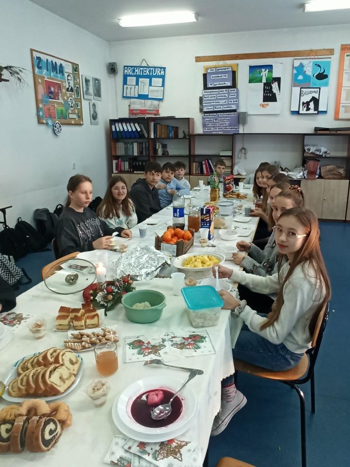 W okresie poprzedzającym Święta Bożego Narodzenia w każdej klasie naszej szkoły odbyły się wigilie klasowe. Był to wyjątkowy czas wspólnego spotkania, rozmów i dzielenia się opłatkiem. Uczniowie wraz z wychowawcami oraz zaproszonymi gośćmi składali sobie świąteczne życzenia, śpiewali kolędy i wspólnie celebrowali atmosferę zbliżających się świąt. Spotkania te sprzyjały integracji oraz wzmacniały więzi koleżeńskie. Serdecznie dziękujemy Rodzicom za zaangażowanie i pomoc w przygotowaniu wigilii klasowych, dzięki którym miały one tak uroczysty i ciepły charakter.