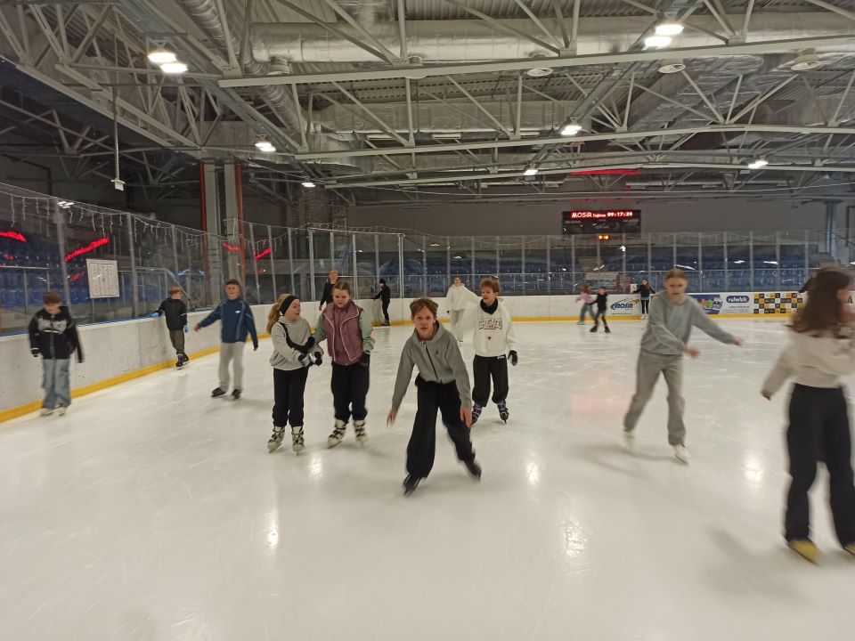 W miniony piątek uczniowie klas 4–8 wybrali się na wycieczkę do Dębicy, gdzie czekała na nich świetna zabawa na lodowisku. Celem wyjazdu była integracja międzyklasowa, aktywne spędzenie czasu oraz doskonalenie umiejętności jazdy na łyżwach. Po przyjeździe na miejsce wszyscy uczestnicy udali się na lodowisko. Dla niektórych uczniów była to kolejna wizyta na tafli, inni natomiast stawiali swoje pierwsze kroki na lodzie. Nie zabrakło śmiechu, drobnych upadków i wzajemnej pomocy. Starsi uczniowie chętnie wspierali młodszych, co sprzyjało budowaniu pozytywnej atmosfery i współpracy. Po intensywnym wysiłku fizycznym przyszedł czas na zasłużony odpoczynek. Uczniowie udali się do pizzerii, gdzie czekała na nich pyszna pizza. Wspólny posiłek był doskonałą okazją do rozmów, dzielenia się wrażeniami z lodowiska oraz dalszej integracji. Wyjazd do Dębicy okazał się bardzo udany. Uczniowie wrócili zmęczeni, ale zadowoleni i pełni pozytywnych wspomnień. Tego typu wycieczki pokazują, że nauka i szkolne obowiązki można z powodzeniem łączyć z aktywnym wypoczynkiem i dobrą zabawą. Opracowała Kamila Grochot-Dziki