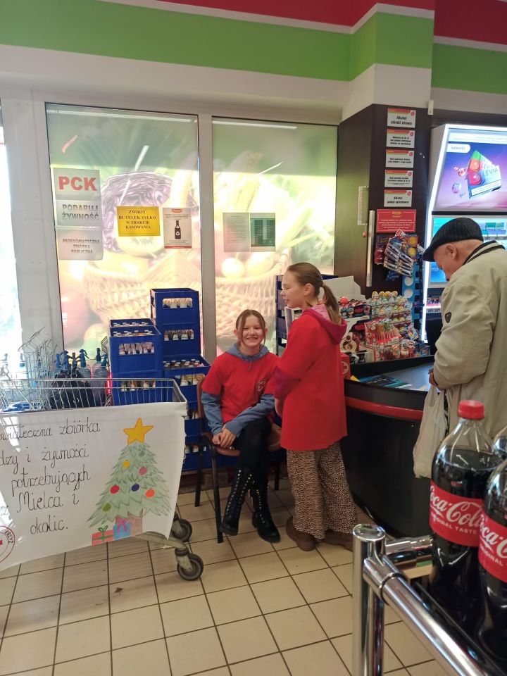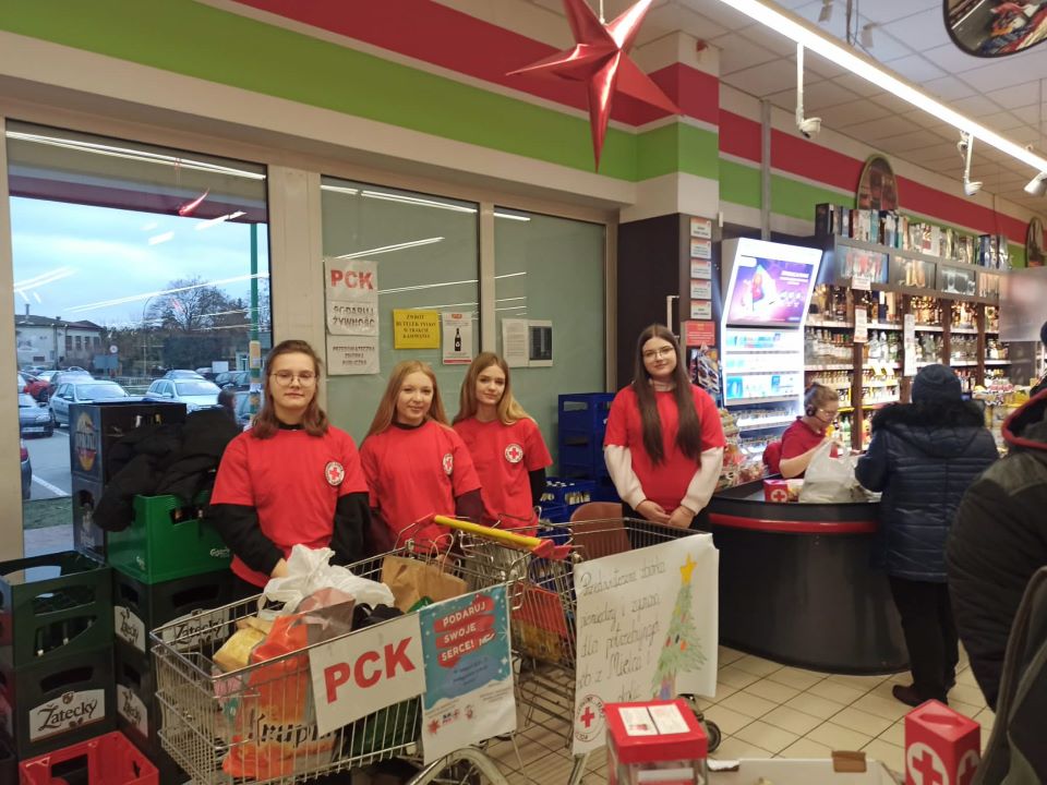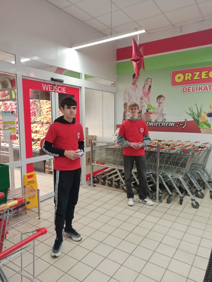 W dniach 12-13 grudnia członkowie SK PCK uczestniczyli w akcji charytatywnej w sklepie Orzech. Akcja polegała na zbiórce pieniędzy oraz żywności dla osób znajdujących się w trudnej sytuacji materialnej. Celem wydarzenia było niesienie realnej pomocy potrzebującym oraz kształtowanie postaw empatii i wrażliwości społecznej wśród uczestników akcji. Wolontariusze zbierali produkty spożywcze o długim terminie przydatności, takie jak makaron, ryż, konserwy czy słodycze, a także środki finansowe przeznaczone na zakup dodatkowych artykułów. Akcja spotkała się z dużym zainteresowaniem i życzliwością ze strony społeczności, dzięki czemu udało się zgromadzić 199 kg żywności i 1864,63 zł. Zebrana żywność została przekazana do Gminnego Ośrodka Pomocy Społecznej w Gawłuszowicach oraz do Środowiskowego Domu Samopomocy w Mielcu, a pieniądze wpłacone do Oddziału Rejonowego w Mielcu. Akcja „Z pomaganiem nam do twarzy” zakończyła się sukcesem i pokazała, że wspólne działania mogą przynieść wiele dobra oraz realnie wpłynąć na poprawę sytuacji innych ludzi. Alicja Stec