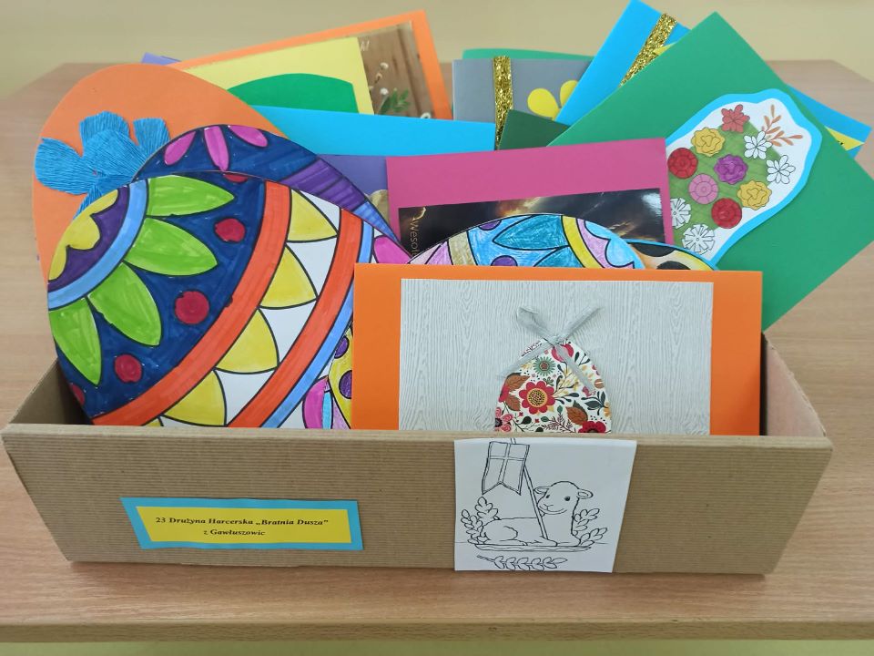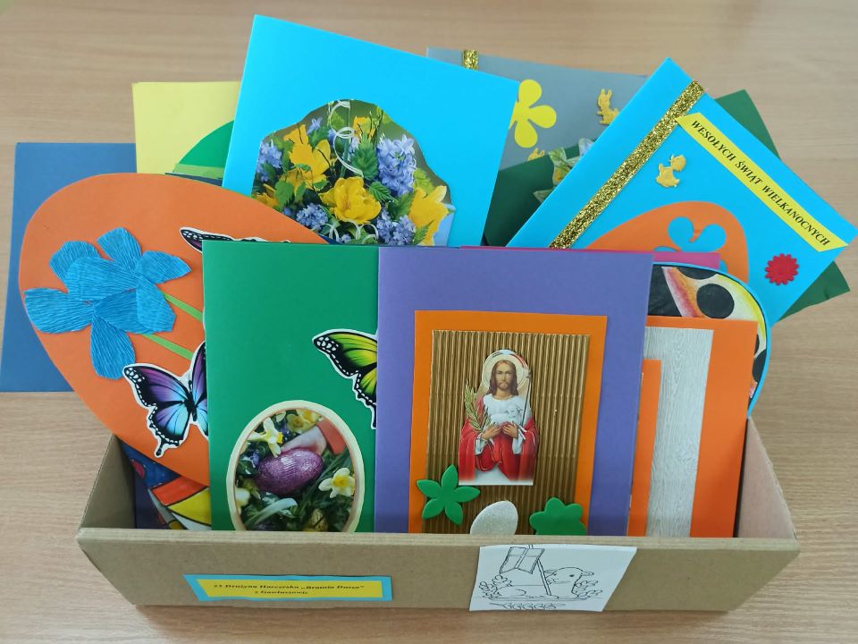 Z okazji Świąt Wielkanocnych harcerze z 23. Drużyny Harcerskiej „Bratnia Dusza” przekazali pensjonariuszom Domu Opieki Społecznej im. Kardynała Stefana Wyszyńskiego w Mielcu, własnoręcznie wykonane kartki świąteczne z życzeniami. To miły gest w stronę osób starszych samotnych i chorych. Opracowała B. Tymuła